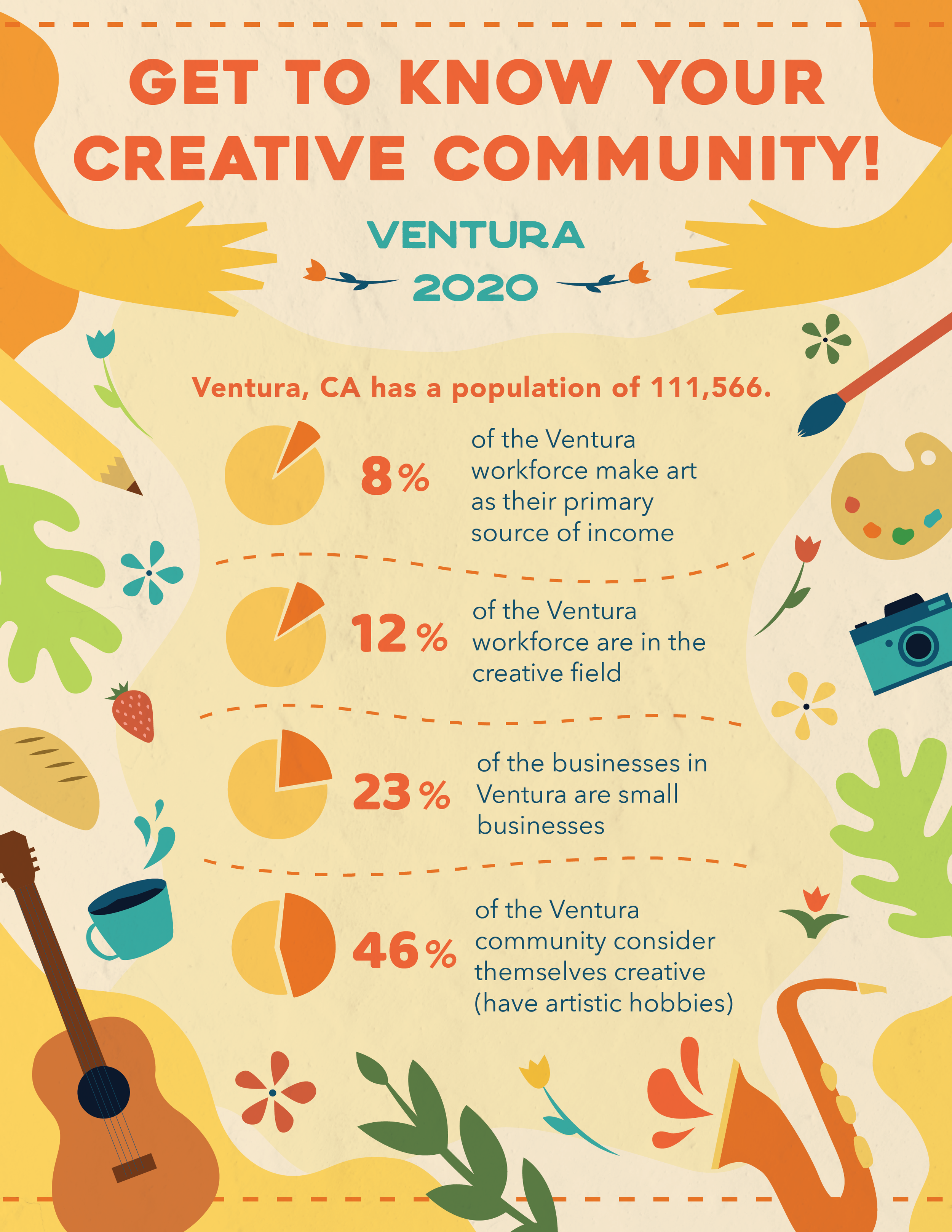 CSU Channel Islands, 2020Community CoordinatorsConceptual company, created with the intent of connecting creatives with each other and bringing communities together through art. Design includes logo, business cards, mockup, and infographic poster.